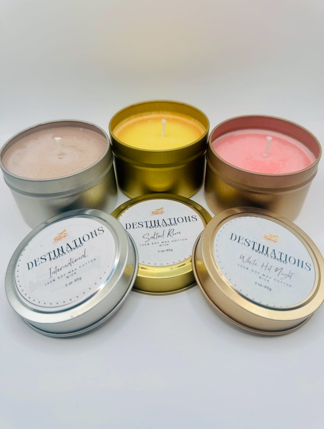 Transform any space into a tranquil oasis with Destinations Travel Candles. Made with all-natural ingredients, these candles are allergen safe and perfect for your on-the-go adventures. Enhance your travels and create a sense of calm and comfort with Destinations candles!