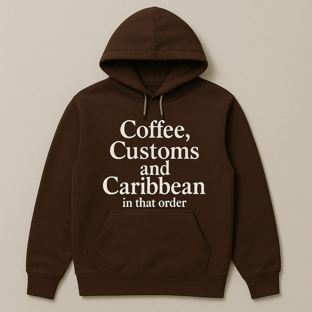 Start your day the travel-lovers way: a little caffeine, a passport stamp, and a tropical state of mind. This hoodie with specialty strings will is crafted for jetsetters who thrive on early flights, smooth customs lines, and sunshine at the final destination. Soft, flattering, and prefect for outfits, cruise days or wherever your soul needs a Caribbean breeze.